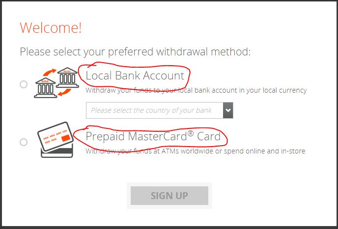 এখানে দুইটি অপশন আছে Local Bank Account এবং Prepaid MasterCard® Card। আপনি যদি শুধু মাত্র ব্যাংক একাউন্টের
