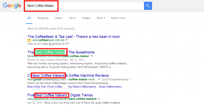 আপনার ব্রাউজারে http://www.google.com-এ যান। http://www.google.com.bd নয় অবশ্যই। http://www.google.com-এ গিয়ে সার্চ বারে লিখুন “Best Coffee Maker” তারপর এন্টার চাপুন। প্রথম পেজের ১০ টি লিংক দেখুন: