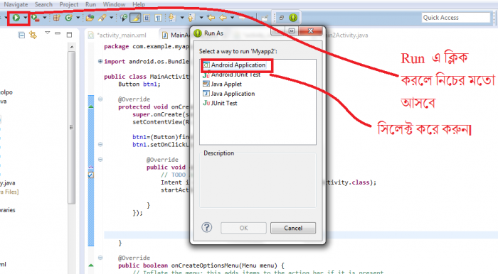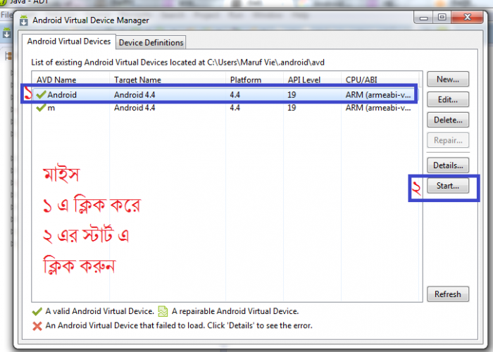 প্রথমে আমরা Eclips /ADT অপেন করি তার পর Android virtual Device ওপেন করি,