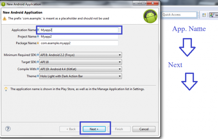ক্লিক করে এপস নাম দিয়ে নেক্সট করি