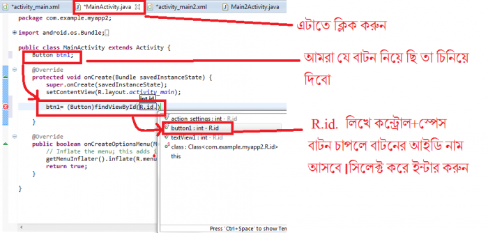 setContentView(R.layout.activity_main);btn1=(Button)findViewById(R.id.button1);