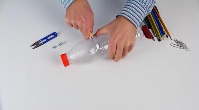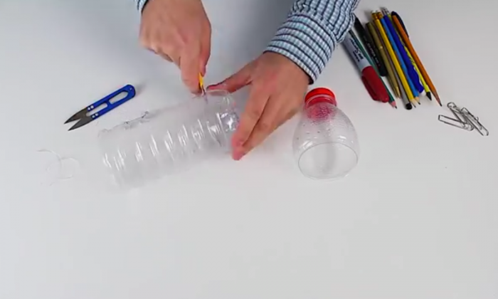 ৫| অনুরূপভাবে বোতলের নিচের দিকের অংশটি ছিদ্র করুন