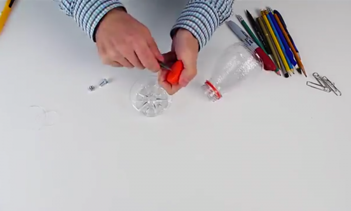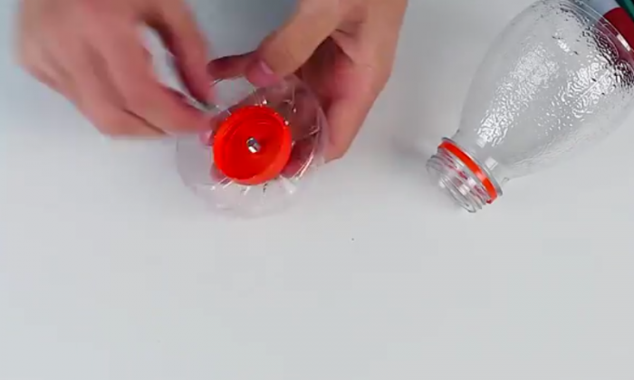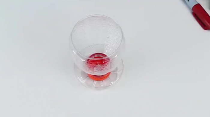 ৬| এবার নাঁটের সাহায্য বোতলের মুখ ও নিচের অংশটি জোড়া লাগিয়ে দিন। নিচের চিত্র দেখুন