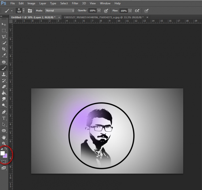 এবারে পেনটুল সিলেক্ট করুন এবং ফরগ্রাউন্ড কালার বেগুনি সিলেক্ট করুন।