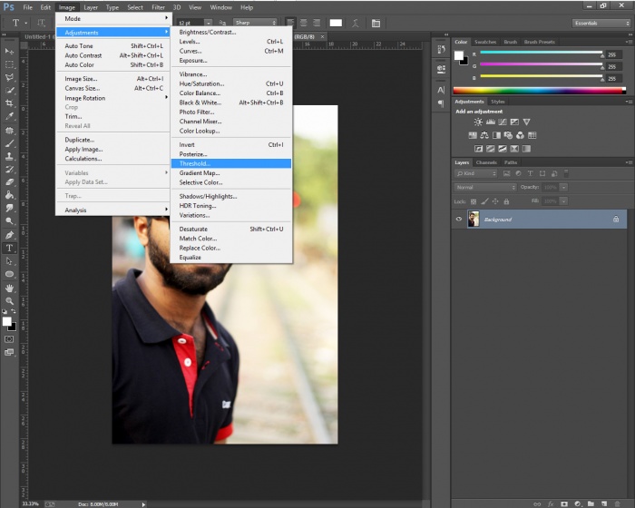 এরপর মেনু থেকে ইমেজে ক্লিক করে এডজাস্টমেন্টে ক্লিক করুন এবং সেখান থেকে থ্রেসহোল্ড ক্লিক করুন