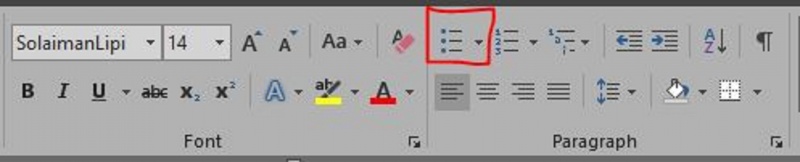 প্রথমে আমারা যেখানে লিষ্ট করবো সেখানে কারচারটি রাখতে হবে, তারপর Home থেকে Bullets List এ ক্লিক করতে হবে। যাদের বুঝতে অসুবিধা হচ্ছে তারা নিচের ছবিটি দেখুন