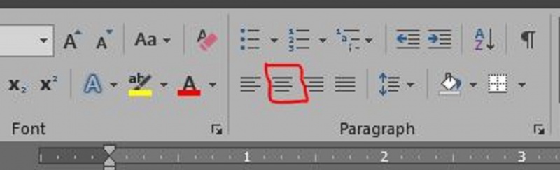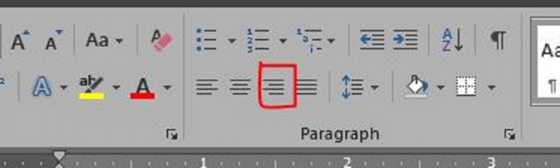 প্রথমে যেটুকু লেখাকে আমরা মাঝে নিতে চাই তা সিলেক্ট বা ব্লক করবো। তারপর Home মেনু থেকে মাউসের মাধ্যমে Align Center এ ক্লিক করবো।