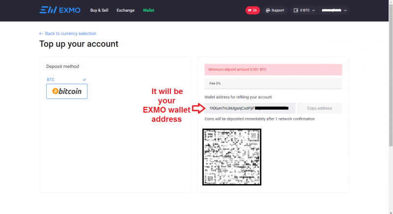 এখন যে পেজ লোড হবে তার ডান সাইডে একটা wallet address দেখতে পাবেন। এইটা আপনার EXMO এর wallet address.