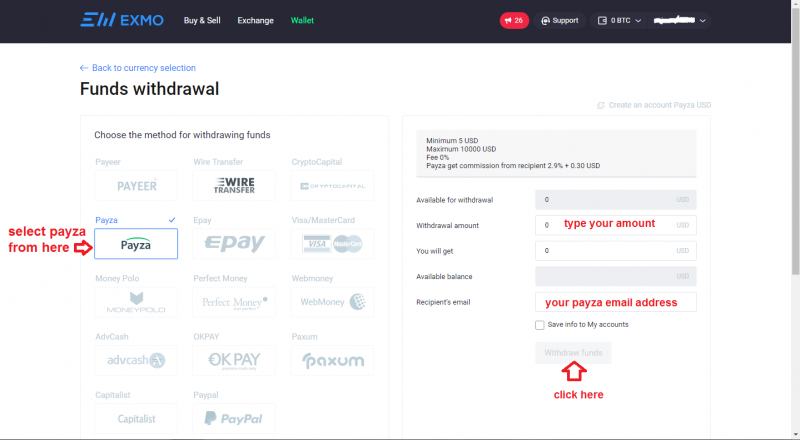 Exmo এর মাধ্যমে কি ভাবে বিট কয়েন US Dollar এ কনভার্ট করবেন অথবা সবথেকে অল্প ফি দিয়ে Payza তে ট্রান্সফার করবেন?