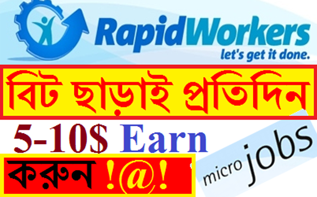 কেমন আছেন সবাই। তো বন্ধুরা আজকে আমরা আরও একটা MicroJob Website নিয়ে আলোচনা করব। এর আগে আমরা Jobboy নিয়ে আলোচনা করেছিলাম। আজকে আমরা আলোচনা RapidWorkers নিয়ে ! যারা অনলাইনে নতুন,যারা অনলাইন থেকে আয় করতে চান তাদের জন্যই মুলত আজকের এই টিউন।MicroJob বলতে ছোট কাজ। উদাহরন সরুপ বলতে গেলে যেমনঃ- file download, email submit, google search, facebook comment, youtube comment, twitter follower,web research etc এমন আর ছোট ছোট কাজ। যা Complete করতে ৪-৫ মিনিট সময় লাগে।এবং এখান থেকে প্রতিদিন খুব সহজে 5$ - 10$ Earn করুন Earn করতে পারবেন।