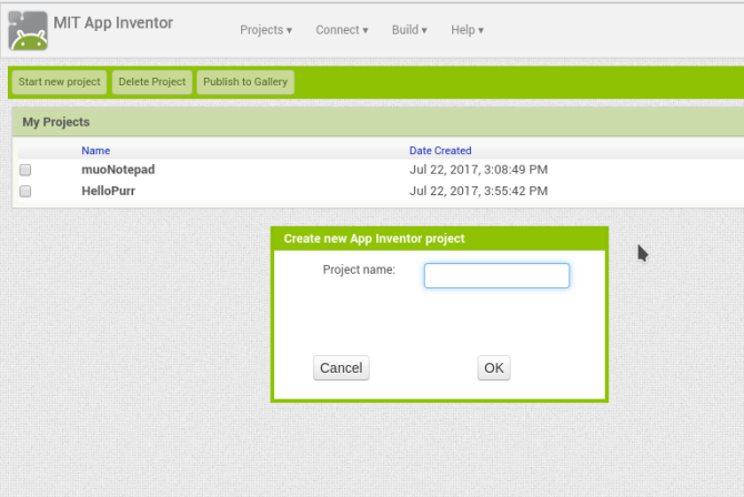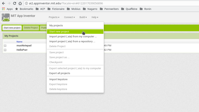প্রথমে App Inventor ওপেন করে একটি নতুন প্রজেক্ট খুলুন। পর্দার বাম পাশে Start new project এর উপর ক্লিক করে কিংবা উপরে Project নামের ড্রপ ডাউন মেনু থেকে নতুন প্রজেক্ট খুলতে পারবেন।