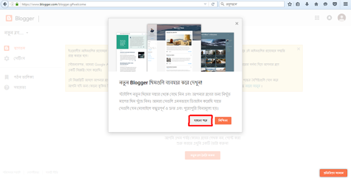 নতুন ব্লগার থিমগুল ব্যবহার করে দেখার কথা বলবে 'হয়ত পরে' এর উপর ক্লিক করুন।