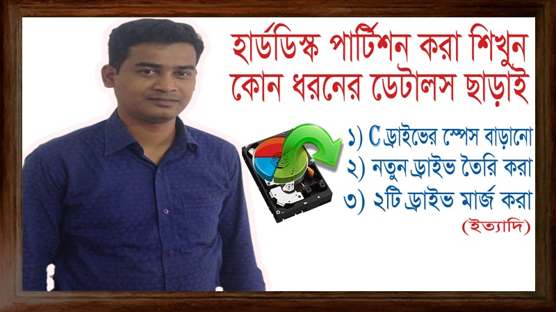 এই প্রসেস গুলি আমরা জানলেও মেক্সিমাম সময় অ্যাপ্লাই করতে বুক কাপে; যদি কোন কারণে হার্ডডিস্কের ড্রাইভ গুলি ফর্মেট হয়ে যায়!!! হার্ডডিস্কের ড্রাইভ গুলির এই ফর্মেট জনিত কারণে অনেক সময় বিভিন্ন অফিসের অনেক মূল্যবান ডেটা লস হয়ে যায়। আর এই কারণে অনেকে চাকুরীচুতও হয়ে থাকেন। আমার এই ভিডিও টিউটোরিয়ালটি একটু খেয়াল করে দেখলে যে কেউই উপরোক্ত প্রয়োজন গুলি মেটাতে পারবেন কোনধরনের ডেটালস ছাড়াই। আমি এই ভিডিও টিউটোরিয়ালে নতুন ড্রাইভ তৈরি করা, দুই বা ততোধিক ড্রাইভকে মার্জ করা, C ড্রাইভের স্পেস বাড়ানোর পদ্ধতি ধারাবাহিক আকারে দেখানোর চেষ্টা করেছি। আশাকরি সকলের ভালো লাগবে। তাই আর অপেক্ষা না করে এখনই আপানর ল্যাপটপ/ডেস্কটপের হার্ডডিস্ক পার্টিশন করা শিখুন কোন ধরনের ডেটালস ছাড়াই।