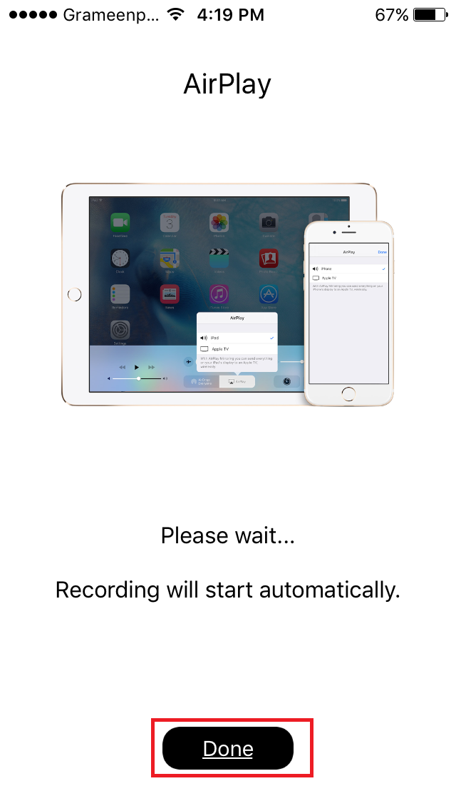 এবার নিচের ইমেজ এর মত DONE লেখা আসবে, এখানে ক্লিক করবেন না। ক্লিক করলে রেকর্ড বন্ধ হয়ে যাবে। রেকর্ড অটো শুরু হবে।