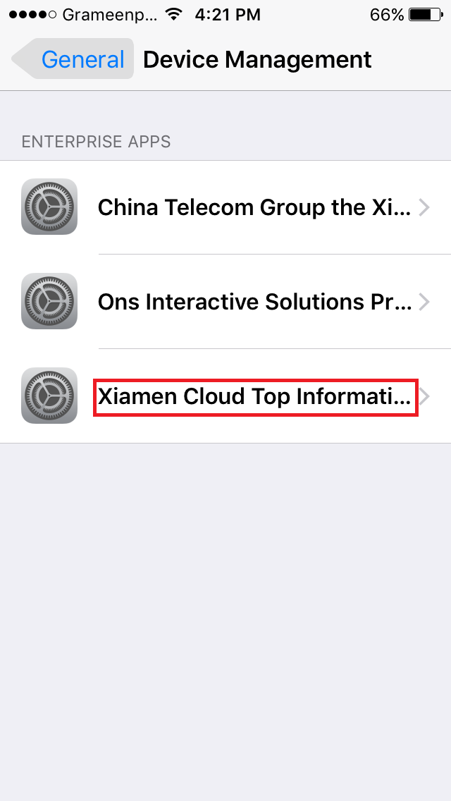 অ্যাপস টি ইন্সটল এর পর ওপেন হবে না। ওপেন করতে সেটিং এ যাবেন Settings>General>Device Management