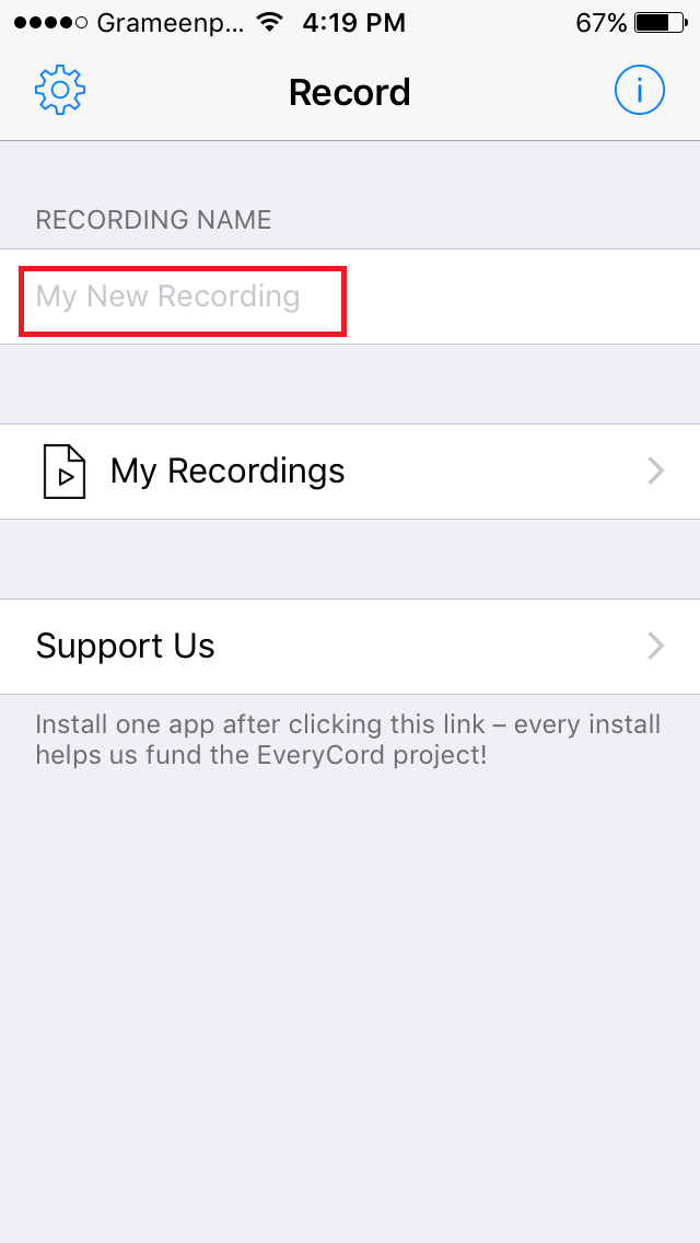 অ্যাপটি ওপেন করে প্রথমে রেকর্ড ফাইল টির একটি নাম দিতে হবে। Then doen >> Yes .