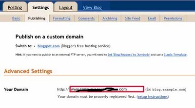 ডোমেইন সেটাপ শেষ। এবার আমরা ব্লগারে ডোমেইন সেট করব।প্রথমে ব্লগারে লগিন করে Settings থেকে Publishing ক্লিক করে নিচের চিত্রের মত ডোমেইন সেট করুন।