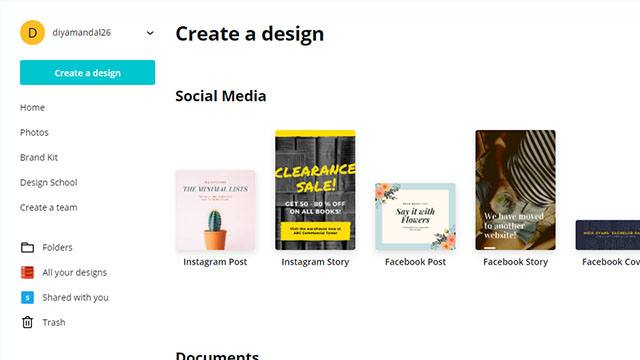 ২। এর পর আপনাকে Create a design এ ক্লিক করতে হবে।