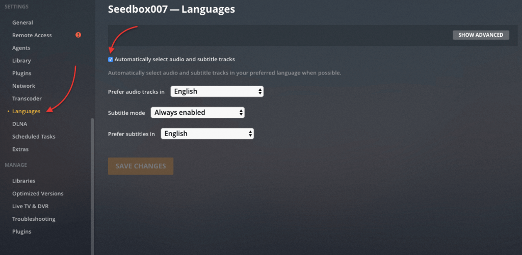 Plex এ ডিফল্ট ভাবে কোন সাবটাইটেল অ্যাড অথবা নতুন সাবটাইটেল ডাউনলোড করে না। যদি আপনি আপনার মুভি এবং টিভি শো তে সাবটাইটেল যোগ করতে চান, তাহলে আপনাকে Settings এ যেতে হবে > তারপর Languages এ যেতে হবে।