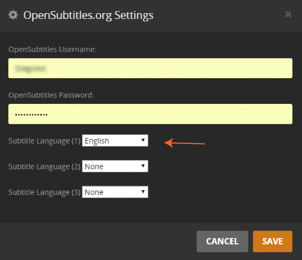 যখন “OpenSubtitles.org” এজেন্ট হিসেবে সিলেক্ট করে ফেলবেন, এখন gear আইকনে ক্লিক করুন এবং কনফিগার করুন। নিশ্চিত করুন, সঠিক language সিলেক্ট করেছেন কিনা যাতে করে সাইটে গিয়ে সঠিক সাবটাইটেল ফাইল ডাউনলোড করতে পারে।
