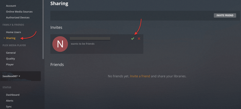 এই ফিচারটি আপনার Plex Media Server এ অন্য media servers কানেক্ট করার অনুমতি প্রদান করে এবং সেই সার্ভারে থাকা কন্টেন্ট গুলো আপনার সার্ভারে শেয়ার করে থাকে। আপনার সমস্ত বন্ধুরা যারা লোকাল নেটওয়ার্কের বাইরে থাকে তাদের কাছে আপনার মিডিয়া শেয়ার করতে চাইলে, প্রথমে আপনাকে নিশ্চিত হতে হবে “Remote Access” এনাবেল এবং তা সঠিকভাবে কাজ করছে কিনা এবং তারপর তাদেরকে ইনভাইটেশন পাঠাতে হবে অন্যথায় তারা আপনার মিডিয়া ফাইলে অ্যাক্সেস করতে পারবে না।