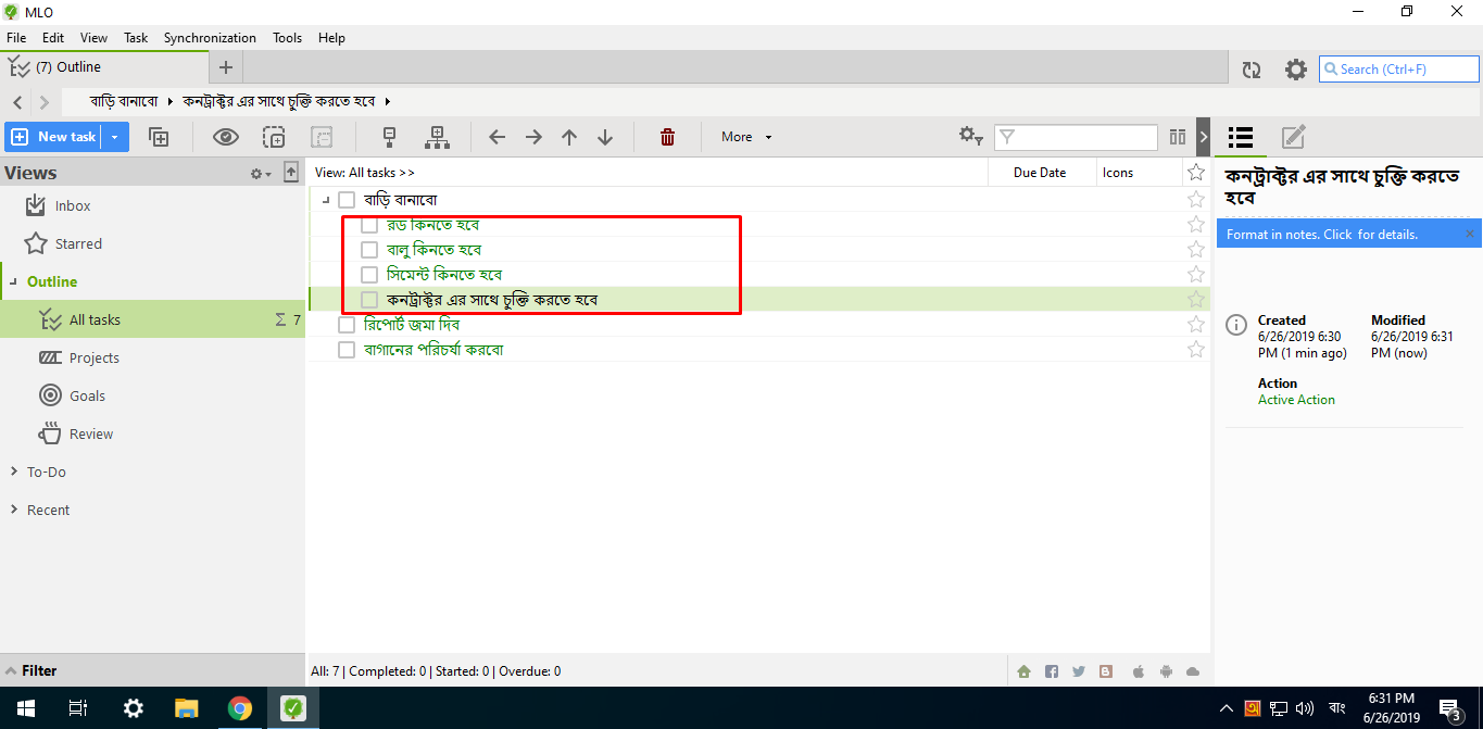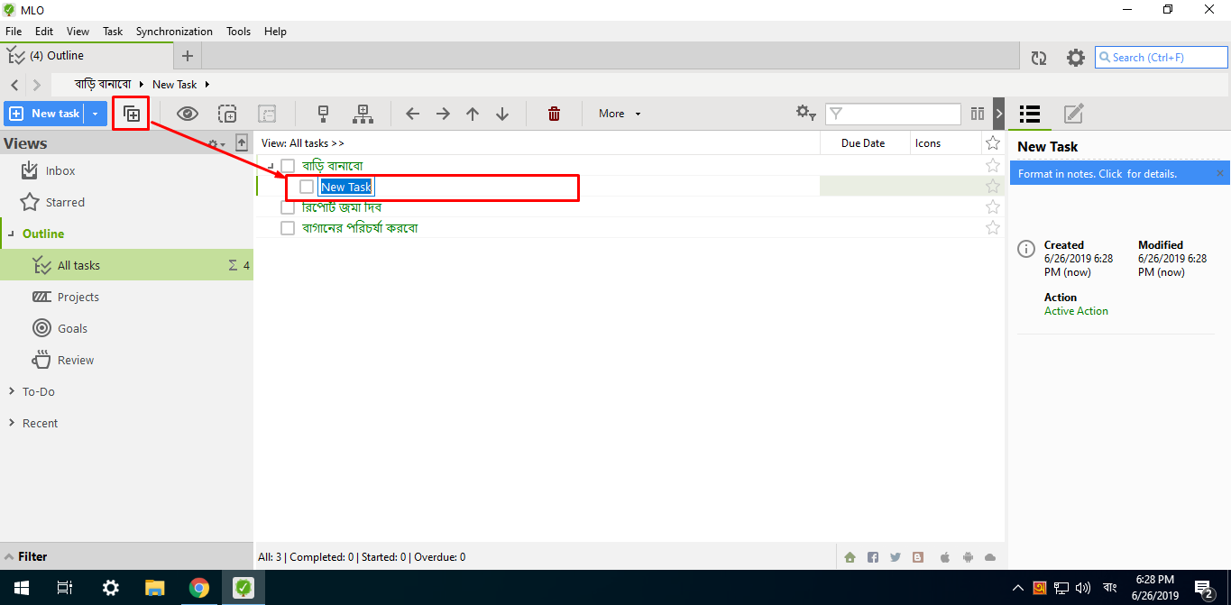কমপ্লেক্স টাস্ক তৈরি করাঃ মনে করুন আপনি একটি বাড়ি বানাবেন, অন্য সাধারণ টাস্কের থেকে বাড়ি বানানো অনেক কমপ্লেক্স কাজ। তাই এর জন্য আপনাকে একটি কমপ্লেক্স টাস্ক বা প্লান তৈরি করতে হবে। নিম্নের ছবিতে লাল চিহ্নিত বক্সে ক্লিক করার মাধ্যমে আপনি একটি কমপ্লেক্স টাস্ক কে বিভিন্ন সাব-টাস্কে ভাগ করে নিতে পারেন ফলে আপনার কাজ কমপ্লিট করতে সহজ হবে।