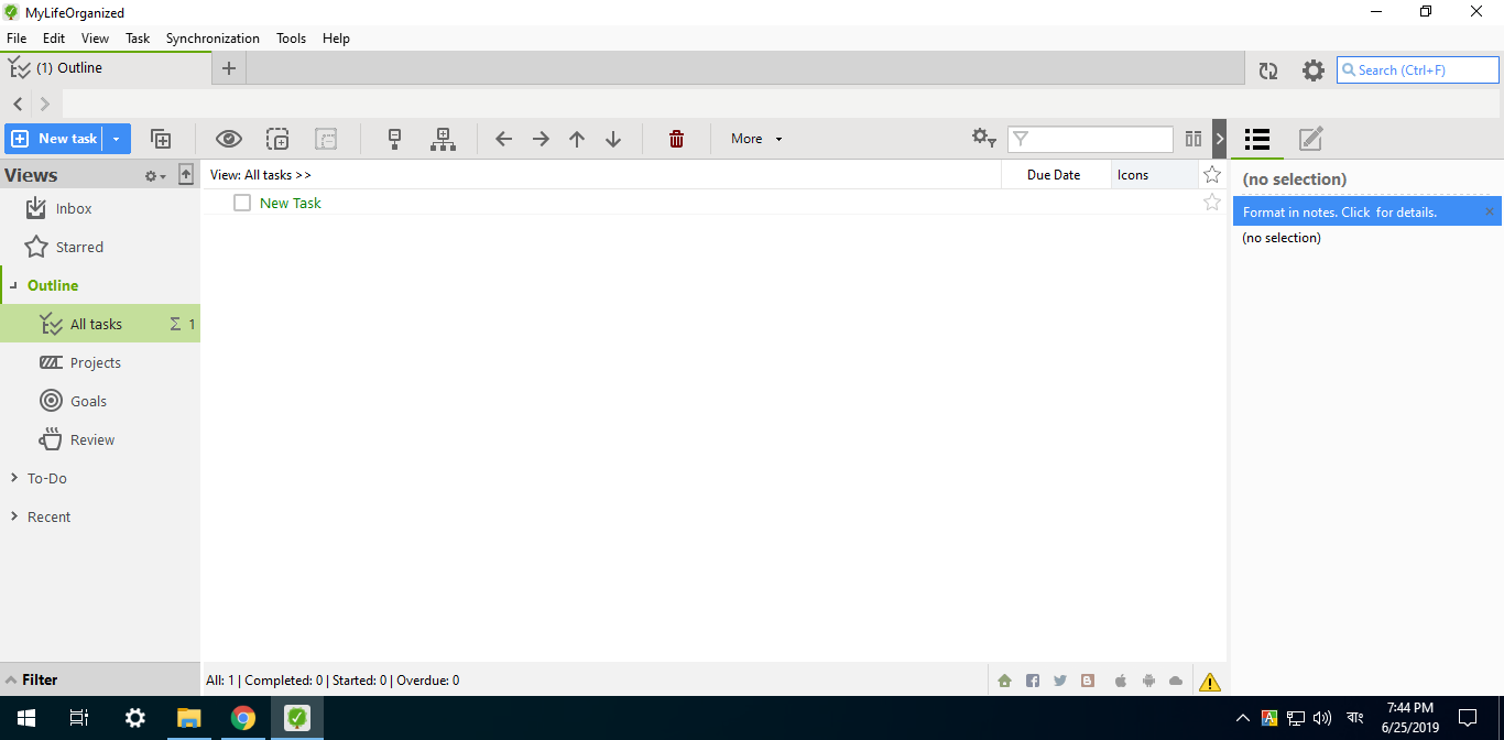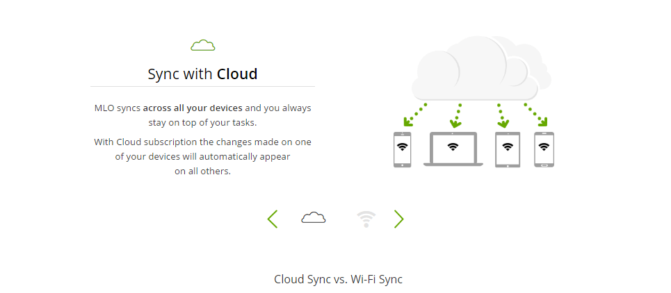 My Life Organized সকল ডিভাইস থেকে টাস্ক সিঙ্ক করতে পারে এবং সেই সিঙ্ক করা টাস্ক অন্য সব টাস্কের উপরে থাকে।