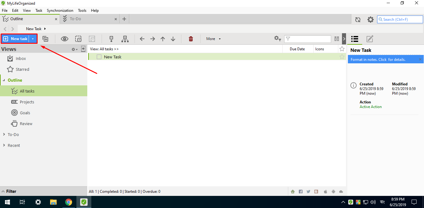 নিউ টাস্ক তৈরি করাঃ My Life Organized ব্যবহার করা পানির মত সোজা, আপনি খুব সহজেই এই অ্যাপ ব্যবহার করতে পারবেন। তারপরও আমি আপনাকে দেখিয়ে দিচ্ছি এই অ্যাপ এর খুটিনাটি কিছু বিষয় যা আপনাকে কিছুটা হলেও সাহায্য করবে। প্রথমে অ্যাপ টি ওপেন করুন, নতুন টাস্ক অ্যাড করতে উপরের বাম কর্ণার থেকে "New Task" বাটনে ক্লিক করুন এবং আপনার টাস্কের ধরন অনুযায়ী একটি নাম দিন।