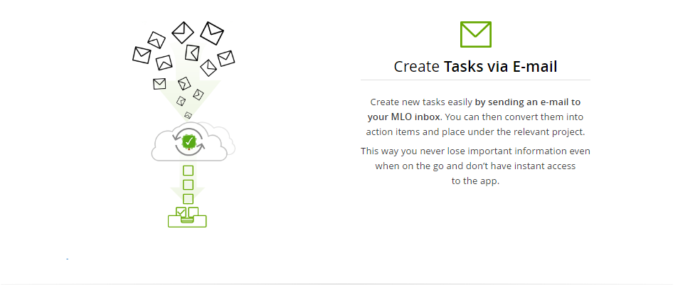 আপনার My Life Organized এর ইনবক্স এ ইমেইল পাঠিয়ে নতুন টাস্ক তৈরি করতে পারবেন। এছারাও আপনি চাইলে এই টাস্ক গুলোকে এ রুপান্তর করতে পারবেন এবং প্রাসঙ্গিক প্রজেক্টে অ্যাড করতে পারবেন।
