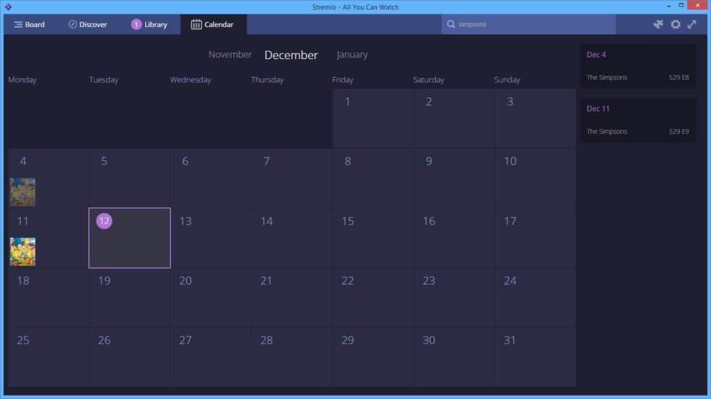 আপনি ক্যালেন্ডার ভিউ এর মাধ্যমে সকল মিডিয়া এবং সিরিজ ডেট অনুযায়ী আপনার লাইব্রেরীতে অ্যাড করতে পারবেন। এছাড়াও Stremio সফটওয়্যার এর ক্যালেন্ডার এক্সপোর্ট করতে পারবেন ফলে যখনি কোন নিউ এপিসোড আপনি মিস করবেন তা খুব সহজেই বুঝতে পারবেন এবং সেই এপিসোড গুলো দেখতে পারবেন।