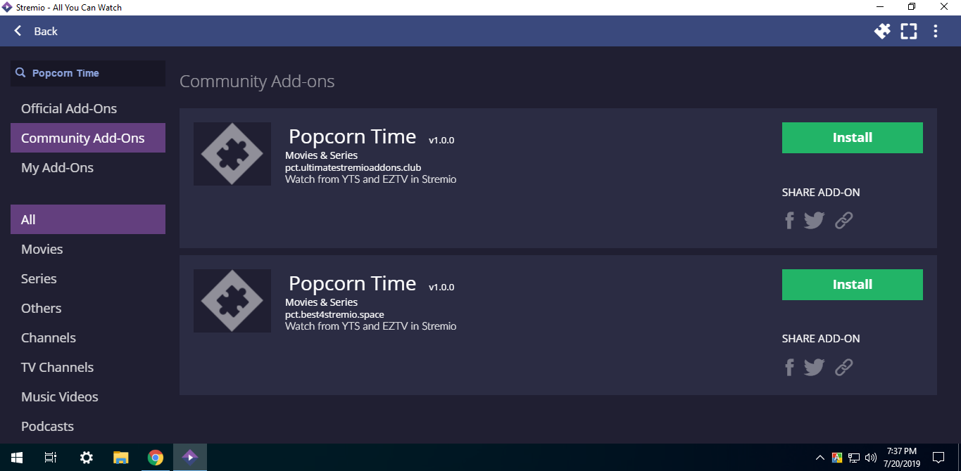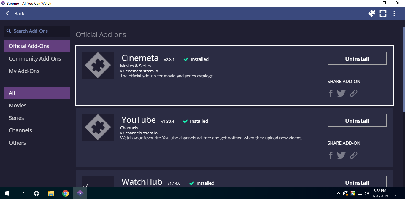 Stremio সফটওয়্যারের সবচেয়ে আকর্ষণীয় ফিচার হলো, এই সফটওয়্যারে অফিসিয়াল এবং আনঅফিসিয়াল অ্যাড অন্স সাপোর্ট করে। আপনি আপনার পছন্দ অনুযায়ী অফিসিয়াল এবং আনঅফিসিয়াল অ্যাড অন্স ইনস্টল করে অনলাইন থেকে ফ্রী কন্টেন্ট দেখতে পারবেন। এই আলোচনাকে আমি অফিসিয়াল এবং আনঅফিসিয়াল দুইটি ভাগে ভাগ করছি, প্রথমে অফিসিয়াল অ্যাড অন্স নিয়ে আলোচনা করবো এবং তারপরে আনঅফিসিয়াল অ্যাড অন্স নিয়ে আলোচনা করবো।