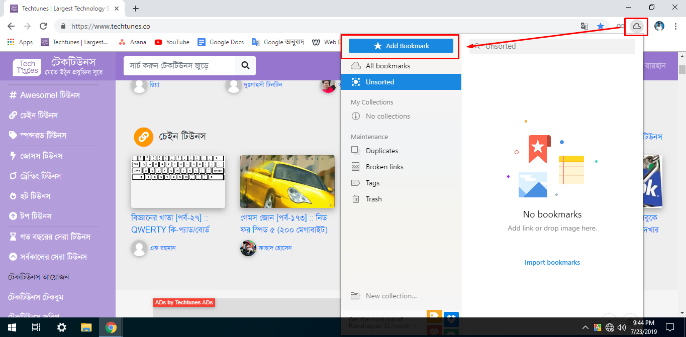 Raindrop টুলস ব্যবহার করা একদমই সহজ। প্রথমে আপনার ব্রাউজার এ Raindrop এর এক্সটেনশন ইন্সটল করবেন। তারপর Raindrop টুলসটি ব্যবহার করার জন্য আপনাকে একটি অ্যাকাউন্ট খুলতে হবে, আশা করছি আপনার ইতিমধ্যে এগুলো সবই করেছেন। এখন আপনাকে দেখাবো কিভাবে আপনি বুকমার্ক সেভ করবেন।