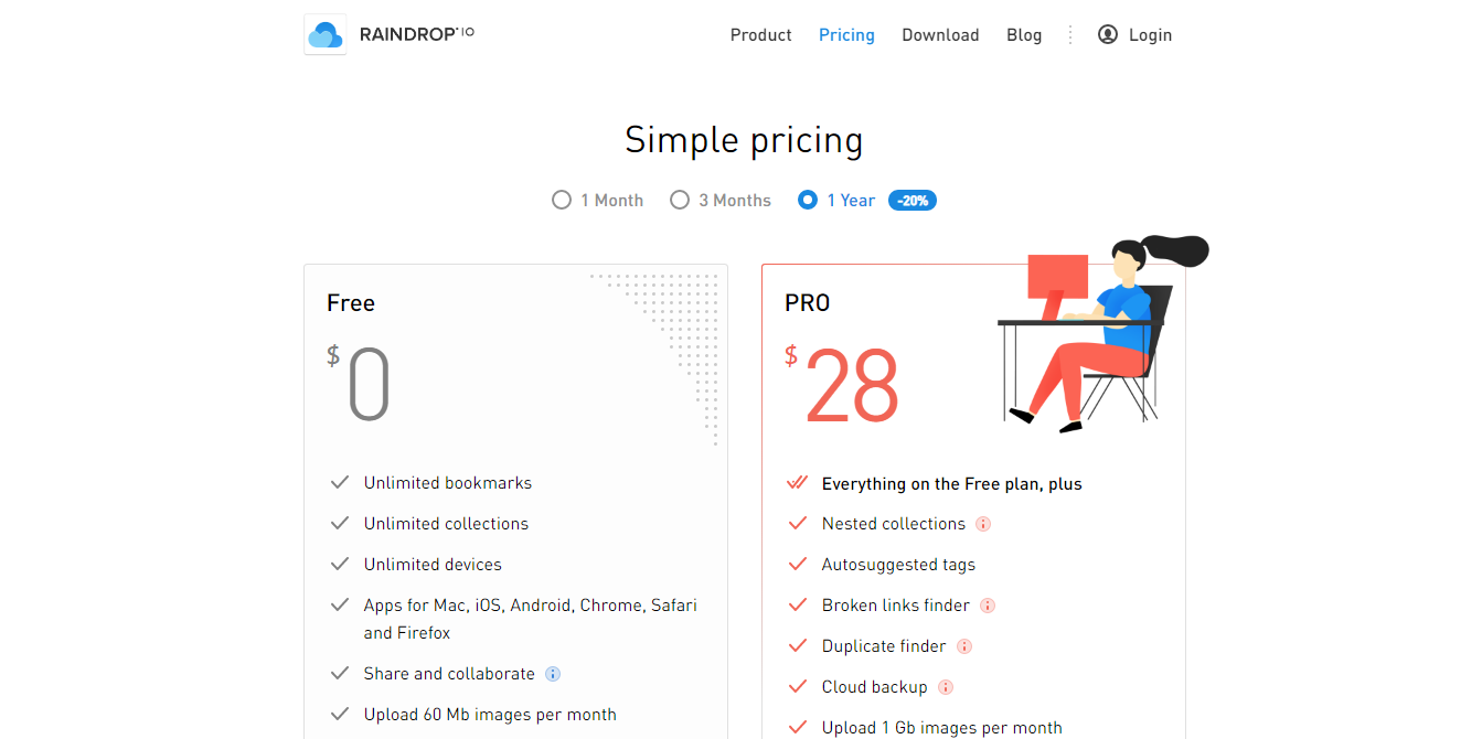 Raindrop এর দুইটি ভার্সন পাওয়া যাচ্ছে, ফ্রি এবং প্রো। আমার মত যারা সাধারণ ব্যবহারকারী আছেন তারা ফ্রি ভার্সন ব্যবহার করে তাদের দৈনন্দিন কাজ করতে পারবেন বলে আশা করা যায়। তবে যারা এডভান্স ব্যবহারকারী আছেন তারা নিচের ছবি থেকে এক নজরে দেখে নিন, আপনারা কি কি অতিরিক্ত ফিচার পাবেন আর হ্যা Raindrop এর সাবস্ক্রিপশন চার্জ খুবই কম, সারা বছরের জন্য আপনাকে $28 ডলার খরচ করতে হবে যা বাংলাদেশি মুদ্রায় প্রায় ৳২৩৬৬ টাকা মাত্র।