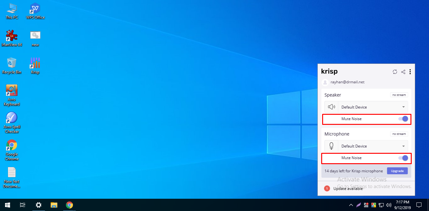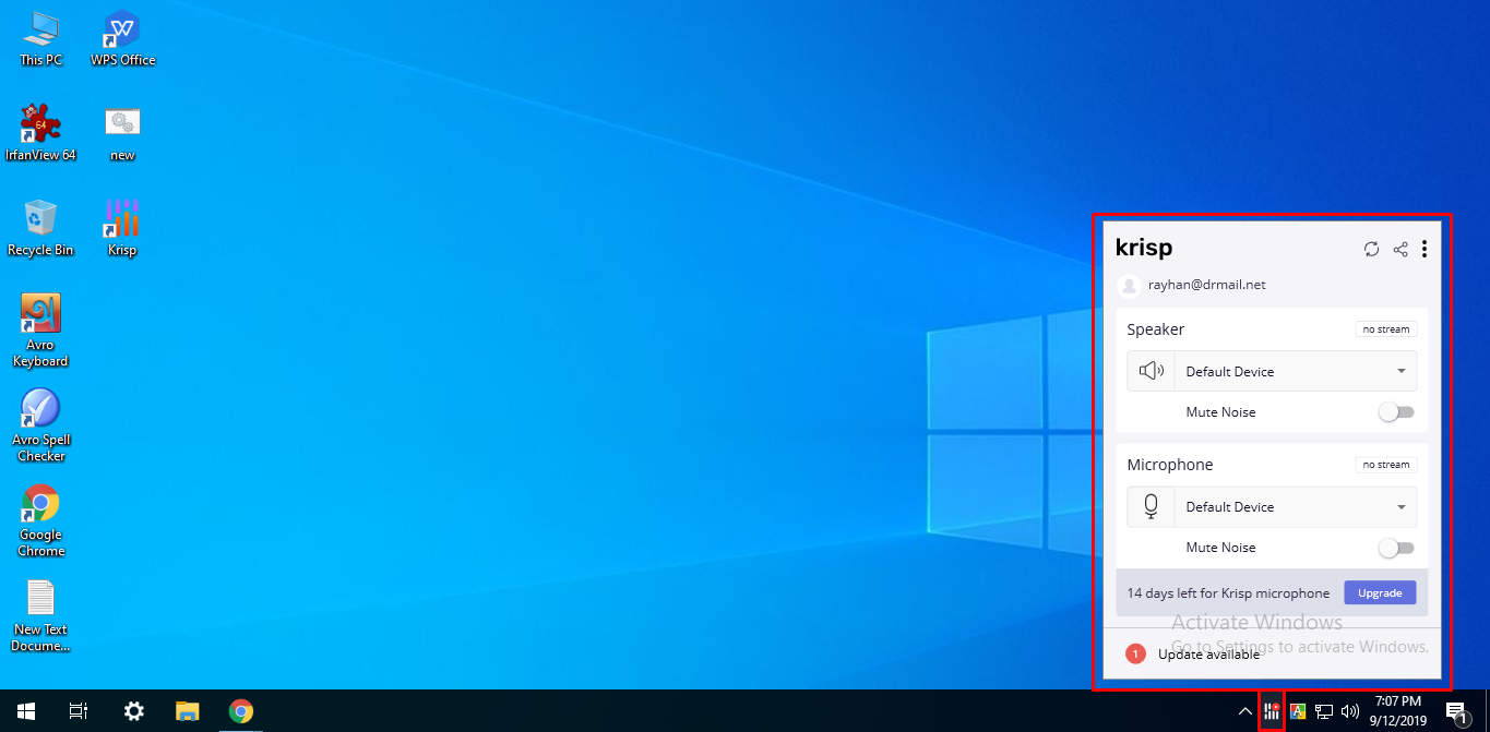এখন টাস্ক বার থেকে Krisp সফটওয়্যার ওপেন করে, স্পিকার এবং মাইক্রোফোন এর মিউট নয়েজ অপশনটি সিলেক্ট করুন। ব্যাস হয়ে গেল আপনার krisp সফটওয়্যার এর সেটিং করা।