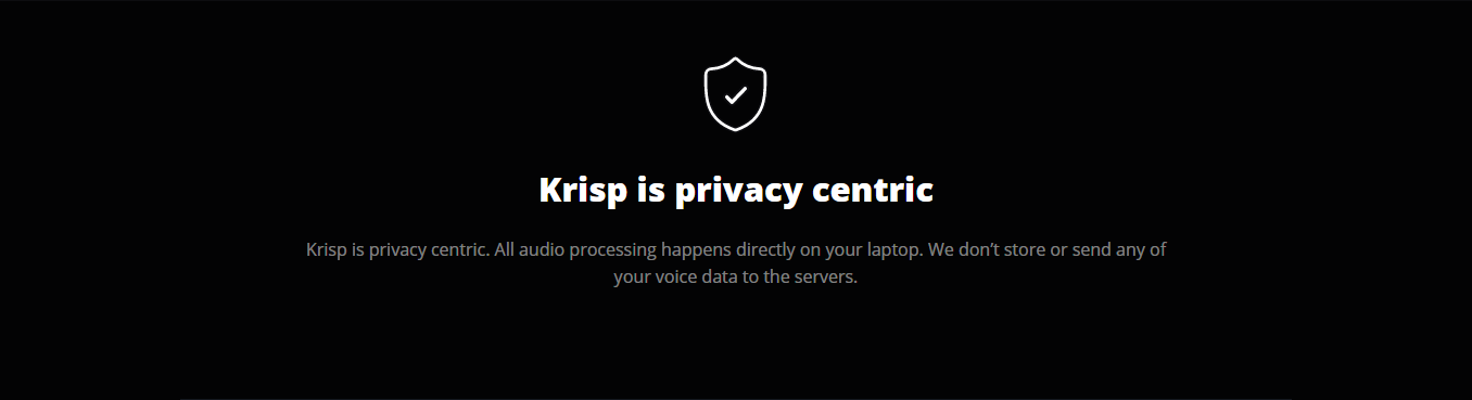 Krisp সফটওয়্যার হল গোপনীয়তা নির্ভর, যার মানে Krisp আপনার কোন তথ্য সংগ্রহ করে না। সব ধরনের নয়েজ রিমুভের জন্য অডিও প্রসেসিং এর সকল কাজ আপনার পিসিতেই করা হয়ে থাকে। যার ফলে Krisp আপনার কোন তথ্য স্টোর করে না অথবা তাদের সার্ভারে আপনার কোন তথ্য নেয়া হয় না।