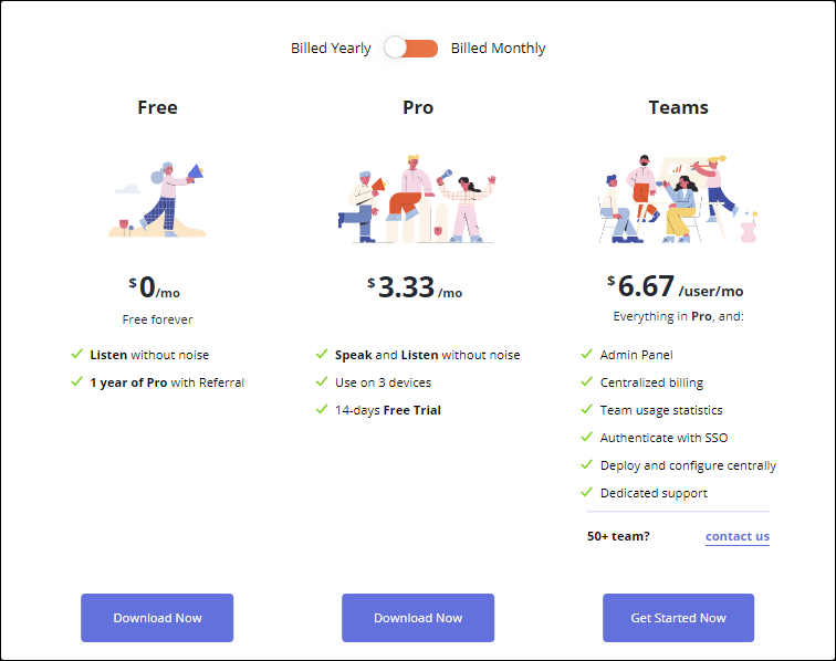 Krisp সফটওয়্যারটি তিনটি ভ্যারিয়েশনে পাওয়া যাচ্ছে, আর তা হল ফ্রি, প্রো এবং টিমস। ফ্রি ভার্সনে আপনি শুধু নয়েজ মুক্ত শব্দ শুনতে পারবেন এবং রেফার করার মাধ্যমে ১ বছর পর্যন্ত প্রো এর সকল সুবিধা ভোগ করতে পারবেন।
