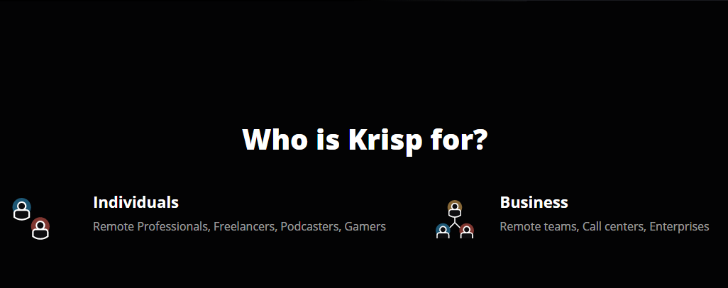 আমি আপনাদেরকে আগেই বলেছি, এই Krisp - Noise Cancelling App সফটওয়্যারটি সবাই ব্যবহার করতে পারে তবে যারা বেশির ভাগ সময়ে বাহিরে থাকে আর বিভিন্ন শব্দের মধ্যে থাকে তাদের জন্যই বেশ উপযোগী। আমি নিচে বিভিন্ন ব্যক্তি এবং কোন কোন ব্যবসা প্রতিষ্ঠানের জন্য সফটওয়্যারটি প্রয়োজন তা উপস্থাপন করছি।