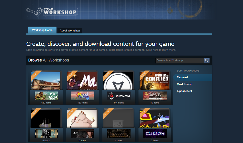 Steam এর ইউজার ফ্রেন্ডলি এই ফিচার ব্যবহারের মাধ্যমে আপনি গেমের মোড তৈরি করতে পারবেন বা অন্যান্য প্লেয়ারের ক্রিয়েট করা মোড ডাউনলোড করে তা উপভোগ করতে পারবেন যা ১০০০ এর অধিক গেমস সাপোর্টেড।