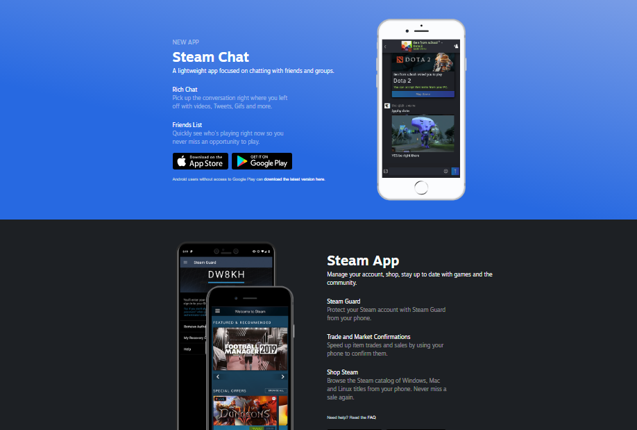 Steam তার ব্যবহারকারীদের কথা চিন্তা করে অ্যাপেল এবং অ্যান্ড্রয়েড এর জন্য মোবাইল অ্যাপ তৈরি করেছে। যার ফলে আপনি সহজেই Steam কমিউনিটির সাথে কানেক্ট হতে পারবেন যে কোন যায়গা থেকে আপনার মোবাইলের সাহায্যে।