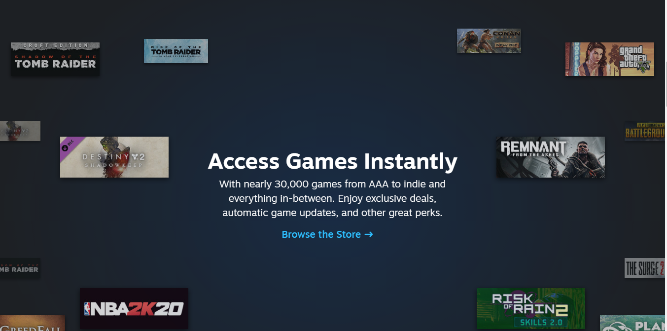 Steam এর মাধ্যমে আপনি ৩০০০০ এর অধিক গেমের কাল্কেটশনে অনায়েসেই অ্যাক্সেস করতে পারবেন। এছারাও আপনি উপভোগ করতে পারবেন অসাধারণ সকল অফার, অটোম্যাটিক গেমস আপডেট, এবং আরো অনেক কিছু। Steam এর শপে ব্রাউজ করতে এখানে ক্লিক করুন।