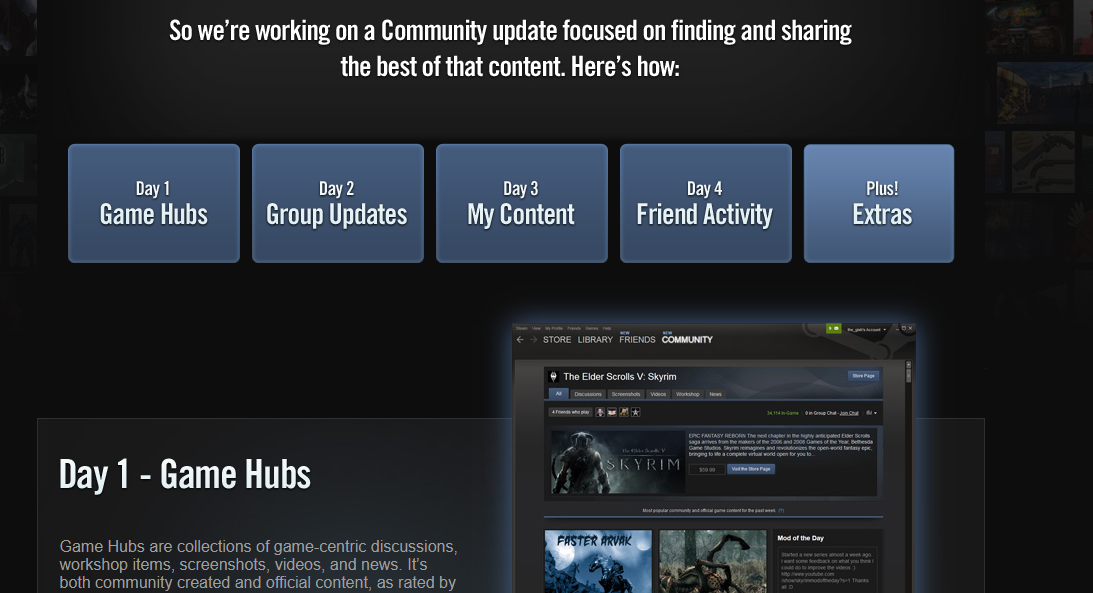 Steam এর গেম হাব ফিচারের মাধ্যমে আপনি সহজেই আপনার পছন্দের গেম সম্পর্কে জানতে পারবেন, আর সব কিছুই পাবেন একই প্লাটফর্মে। এছাড়াও আপনি ডিস্ক্যাশনে জয়েন, কন্টেন্ট আপলোড এবং আপনি হতে পারেন প্রথম ব্যক্তি যে সর্বপ্রথম জানতে পারবেন গেমের আপডেট সম্পর্কে।