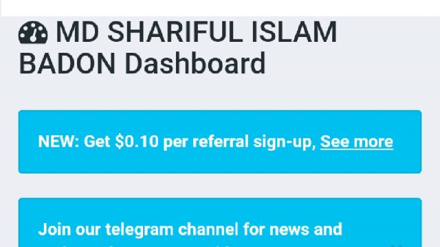 তাছাড়াও রয়েছে রেফার কমিশন প্রতি রেফারে 10 সেন্ট করে আর মিনিমাম উইথড্র হচ্ছে 30 ডলার।