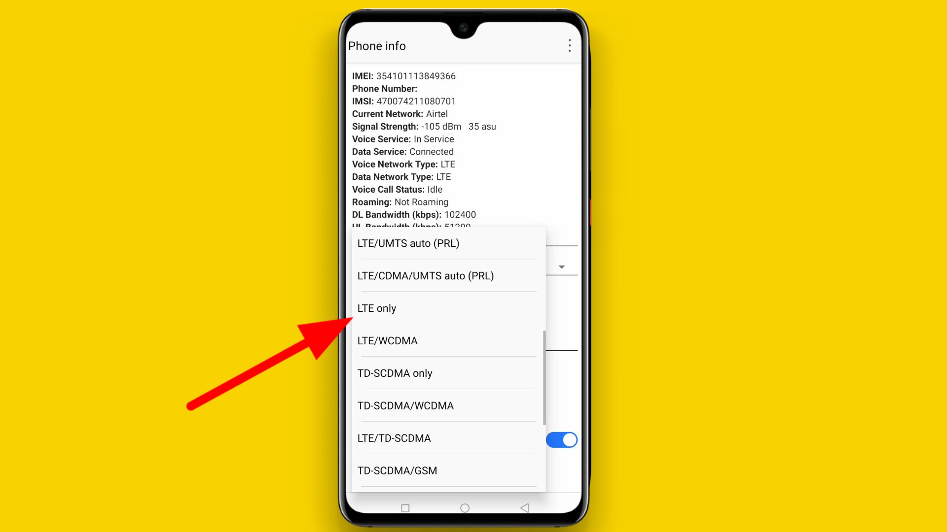 ৬. তারপর আপনি এখান থেকে খুঁজে নিন LTE only লেখাটি। তারপর সেটি সিলেক্ট করে দিন। তারপর আপনার মোবাইলের ডাটা কানেকশন চালু করা থাকলে সেটি Automatic বন্ধ হয়ে আবার 4G নেটওয়ার্কসহ ইন্টারনেট চালু হবে।