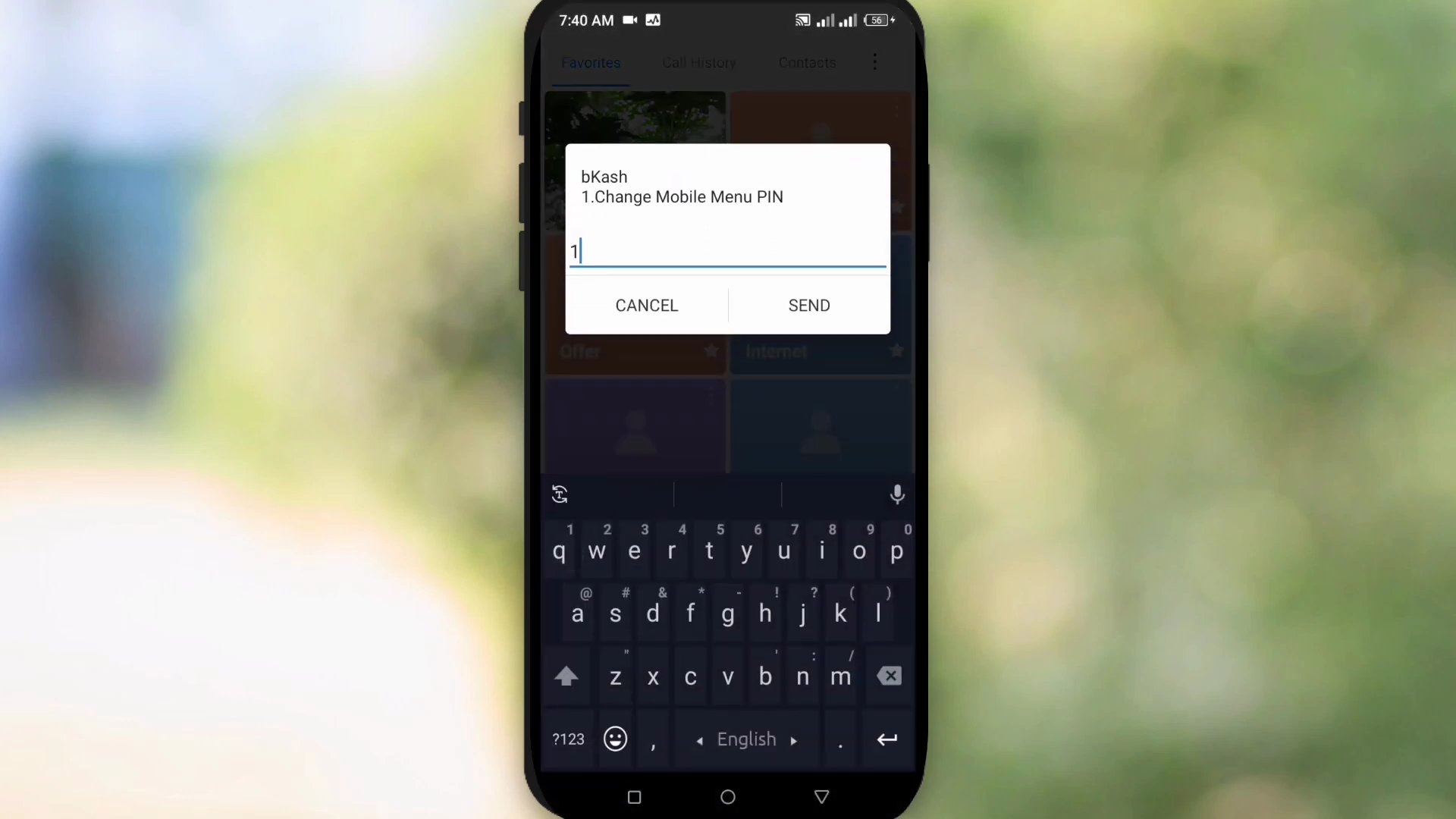 ১৪. এরপর দেখতে পাবেন 1. Change Mobile Menu Pin. আপনি আবার 1 তুলে Send করুন।