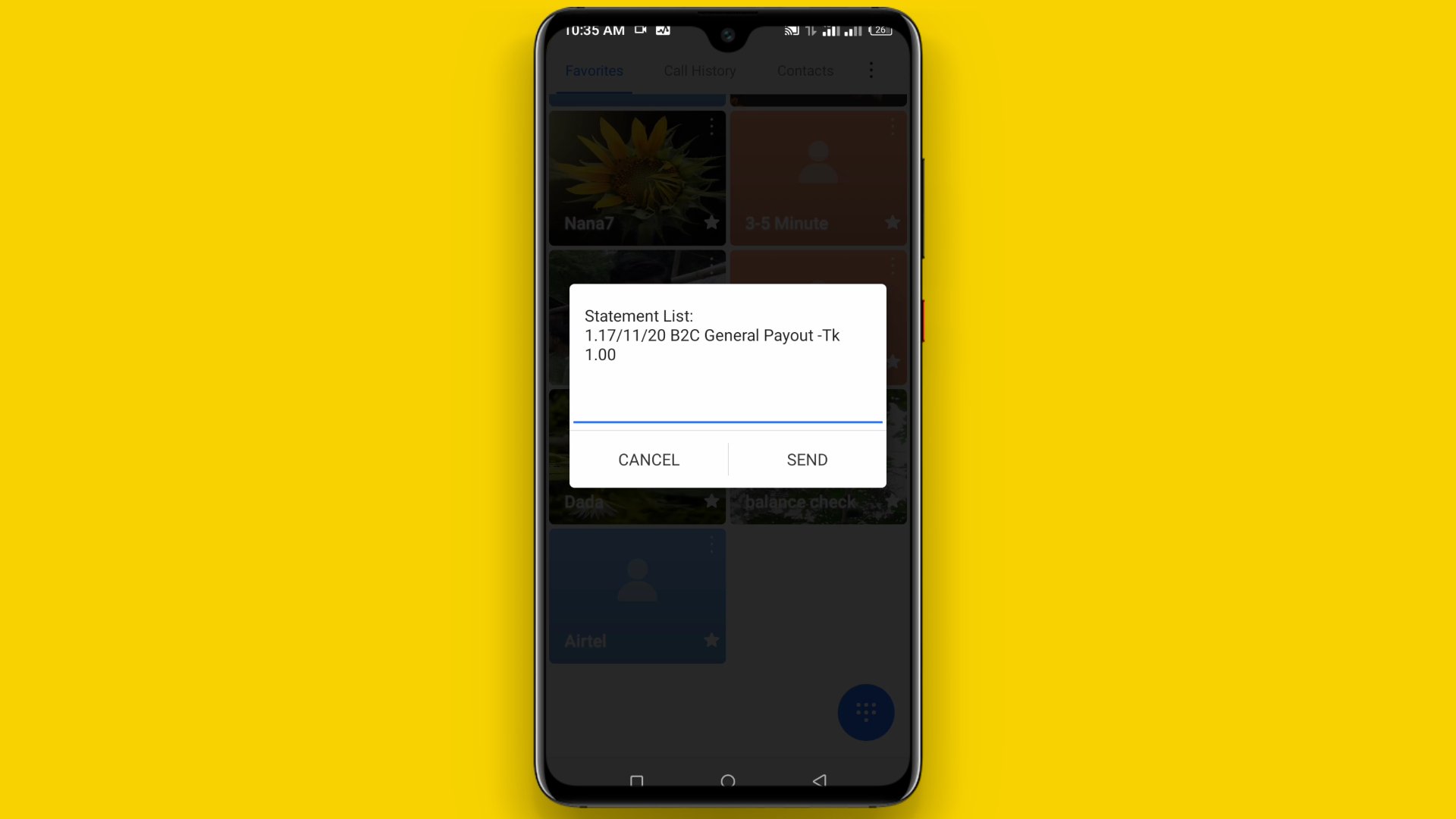 ৬. আপনাকে এখানে কয়েকটি লেনদেনের তথ্য দেখাবে। আপনি সর্বশেষ যে লেনদেনটি করেছিলেন সে সংখ্যা তুলে এখানে সেন্ড করুন।