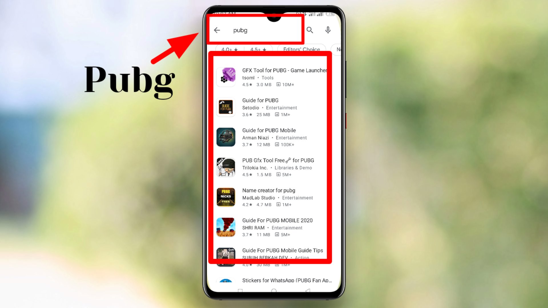 ৭. উদাহরণস্বরূপ, আমি গুগল প্লে স্টোরে গিয়ে সার্চ করছি Pubg লিখে। কিন্তু আপনি এখানে দেখতে পাচ্ছেন এখানে কোন পাবজি গেম নেই। কেননা এই বয়সের জন্য এই গেমটি তৈরি করা হয়নি।