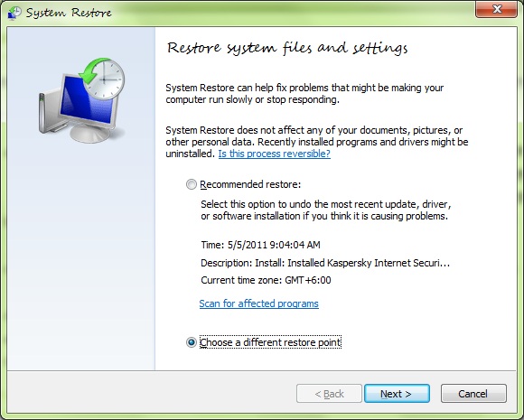 iii. সবচেয়ে এয়ারলিয়ার টাইমে রিস্টোর করুন। start> Programs> Accessories> System Tools> System Restore কমান্ড দিন। নেক্সট দিন তারপর শো মোর রিস্টর পয়েন্ট টীক দিন। সবথেকে নিচে চলে যান। সিলেক্ট করে নেক্সট দিয়ে রিস্টোর করুন।