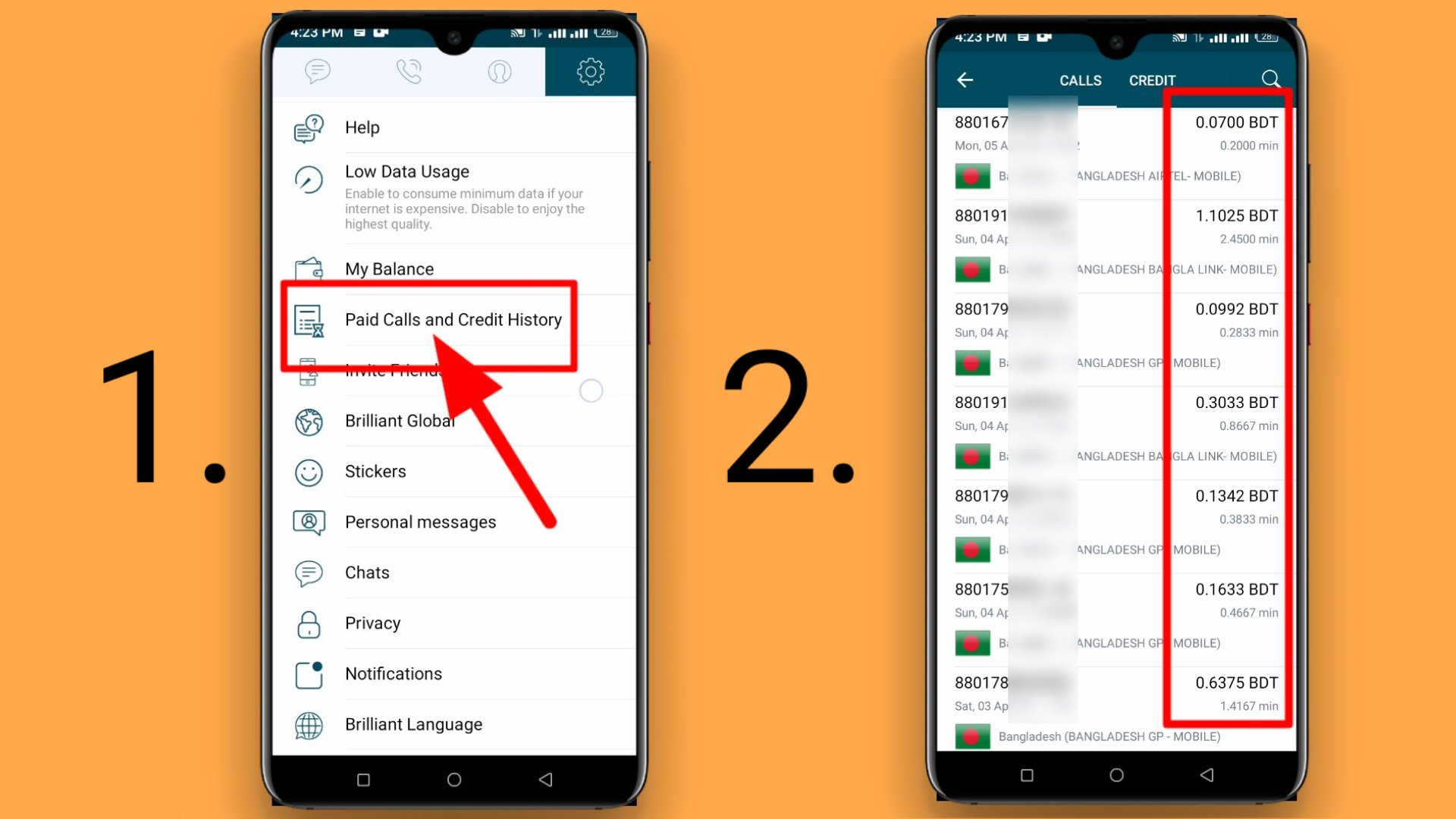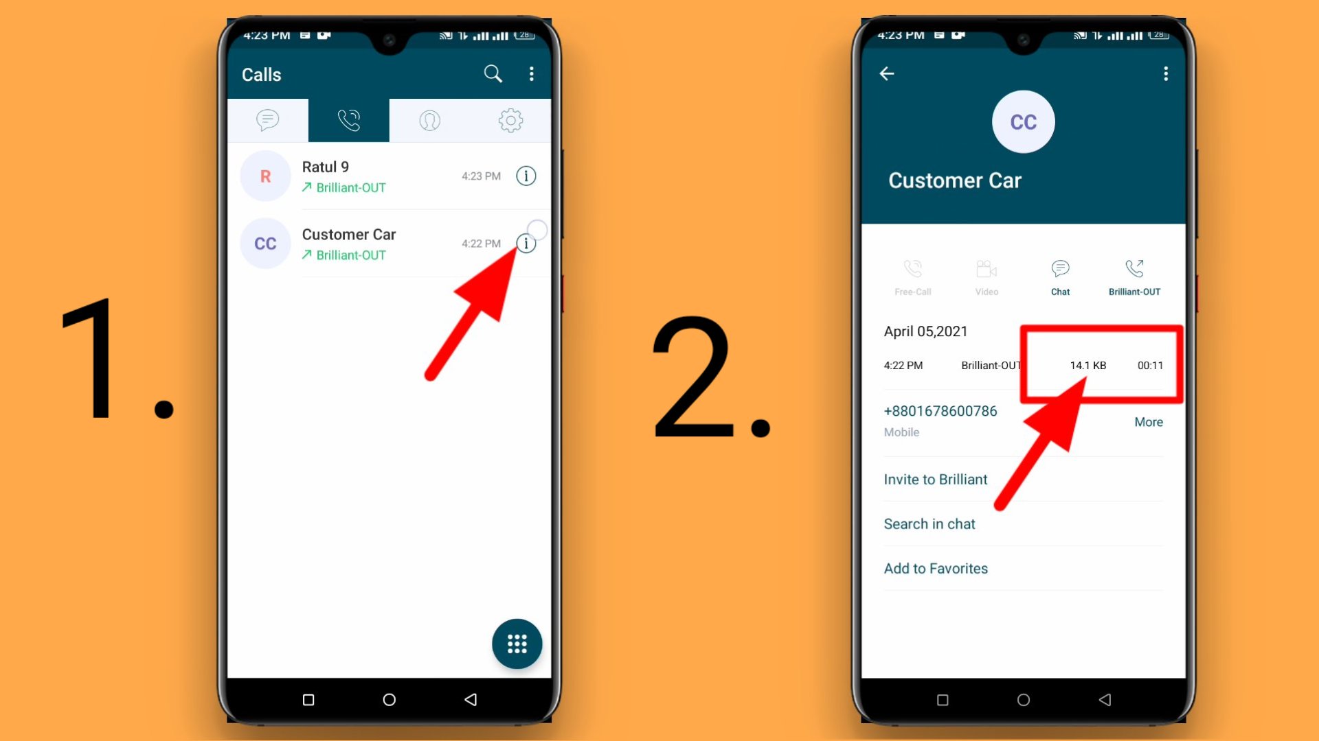 আমরা যখন আমাদের মোবাইলের সিম থেকে কাউকে কল করি তখন সেই নাম্বারটি কল হিস্টোর তে জমা হয়ে থাকে। ঠিক সেরকম ভাবেই ব্রিলিয়ান্ট অ্যাপ থেকে আপনি যদি কাউকে কল দেন সেই হিস্টরি টিও জমা হয়ে থাকে। শুধু কল হিস্টরি নয়, প্রতিটি কলের সময় এবং সেই কলে চার্জ করা টাকার হিসাব দেখতে পারবেন ব্রিলিয়ান্ট অ্যাপ এর মাধ্যমেই। সেটি কীভাবে, চলুন তবে দেখে নেয়া যাক।
