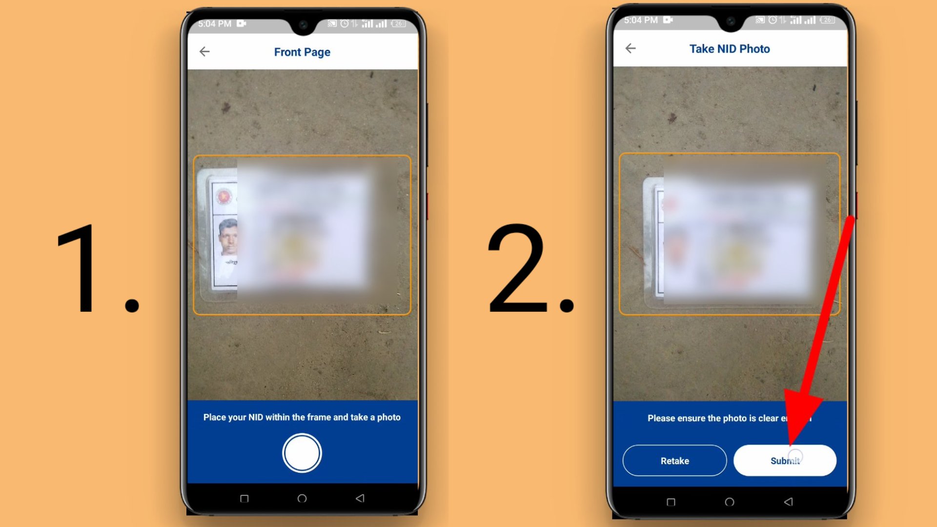 ৪. এবার এনআইডি কার্ডের ফ্রন্ট সাইড এবং ব্যাক সাইডের ছবি তোলার পর 'Submit' বাটনে ক্লিক করবেন।
