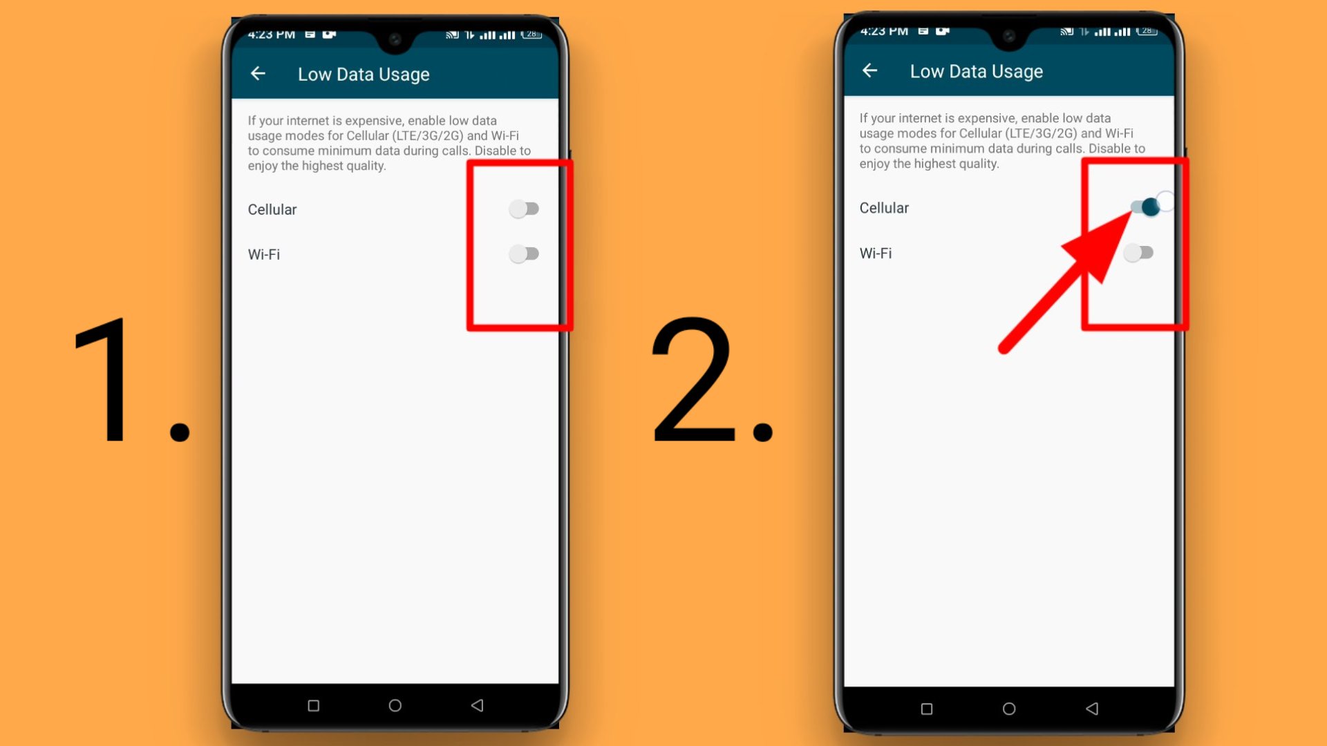 ২. এবার আপনি সেখানে দেখতে পাবেন যে, 'Cellular' এবং 'Wifi' দুইটি সেটিং রয়েছে। এখান থেকে আপনি যে মাধ্যম দিয়ে ডাটা সাশ্রয় করতে চাচ্ছেন সেটি চালু করে দিন। তাহলে কাউকে কল করার সময় আপনার মোবাইল থেকে খুবই কম পরিমাণে ডাটা খরচ হবে। তবে আমি মনে করি এটি বন্ধ থাকাই ভালো। কেননা কল করার সময় যে পরিমাণ ডাটা খরচ হয় তা অতি সামান্য।